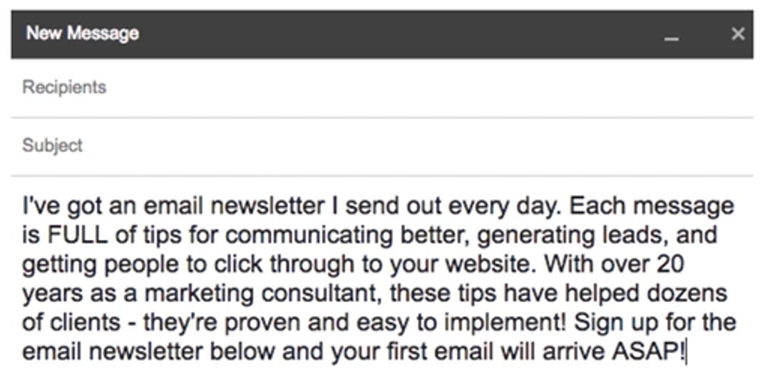 "I've got an email newsletter I send out every day. Each message is FULL of tips for communicating better, generating leads..."