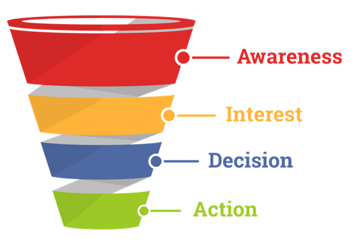 AIDA model is an acronym that represents the thought process that a potential customer experiences when deciding whether to make a purchase. It can be represented in a funnel.