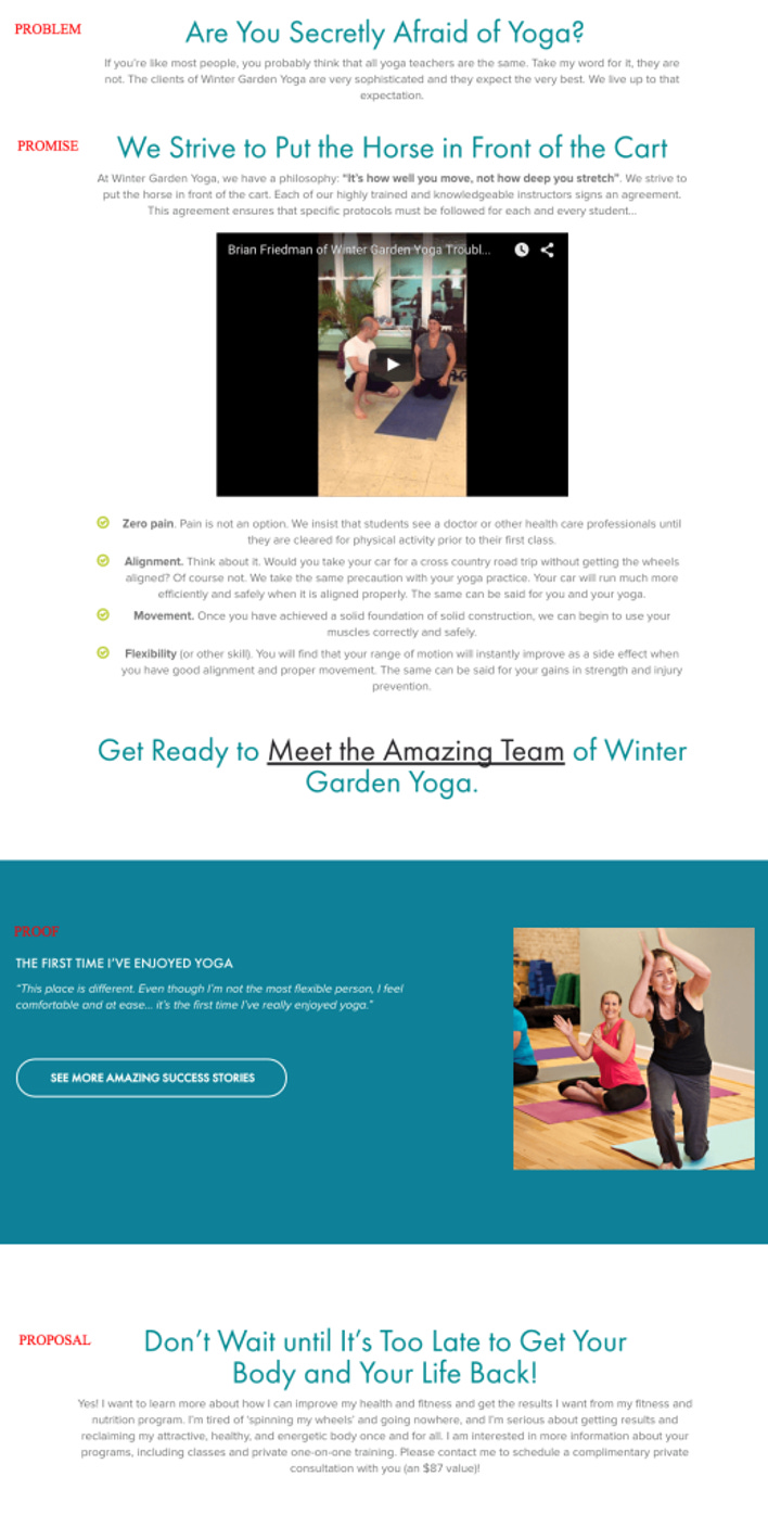This is a mouthful (explained very well by Buffer). But it's a great formula as it covers every part that makes a good copy. It could be used for a landing page or your website's homepage.
